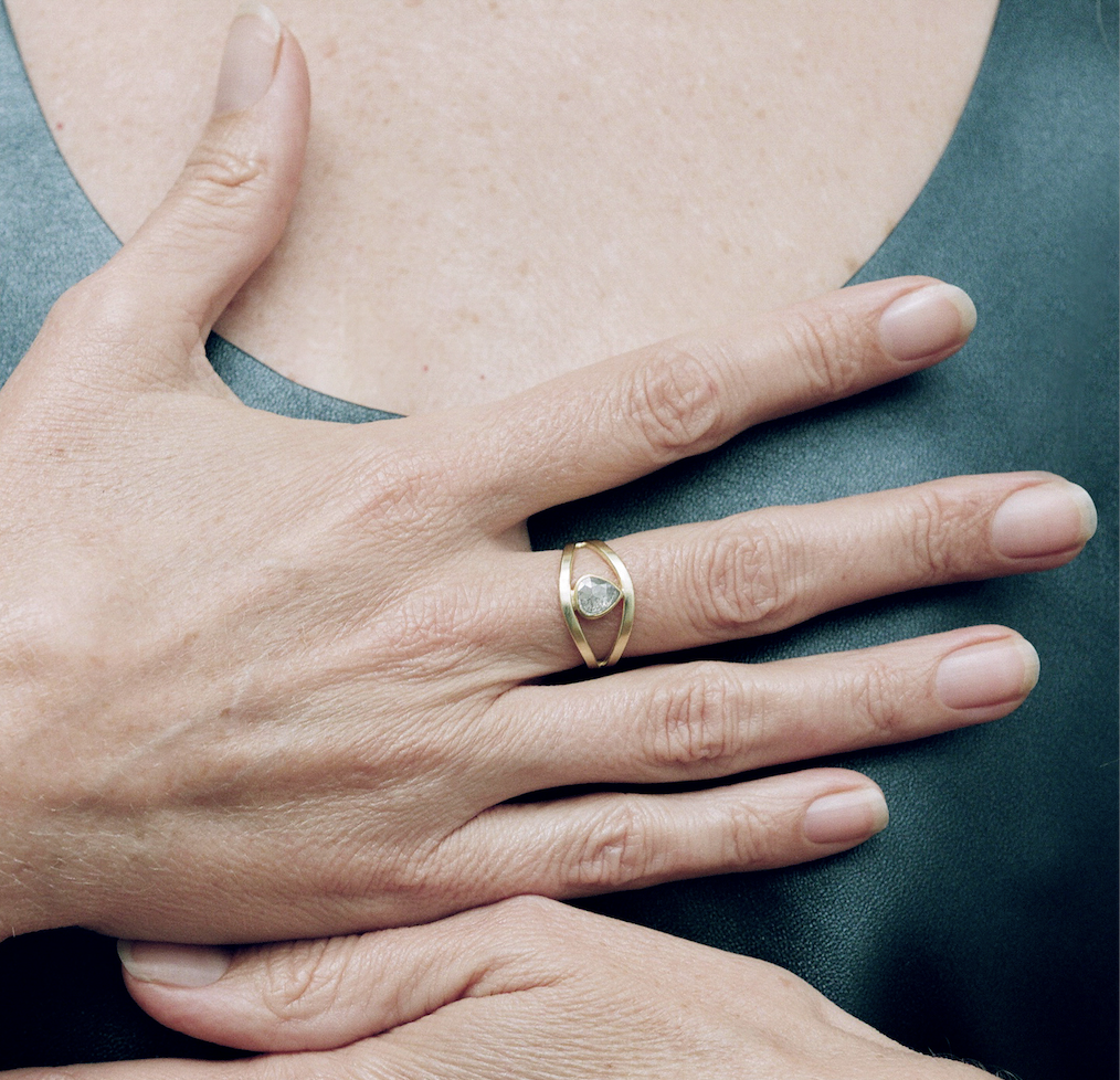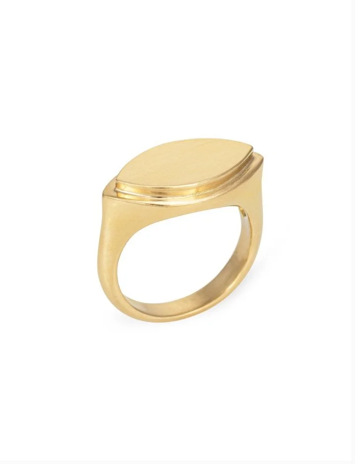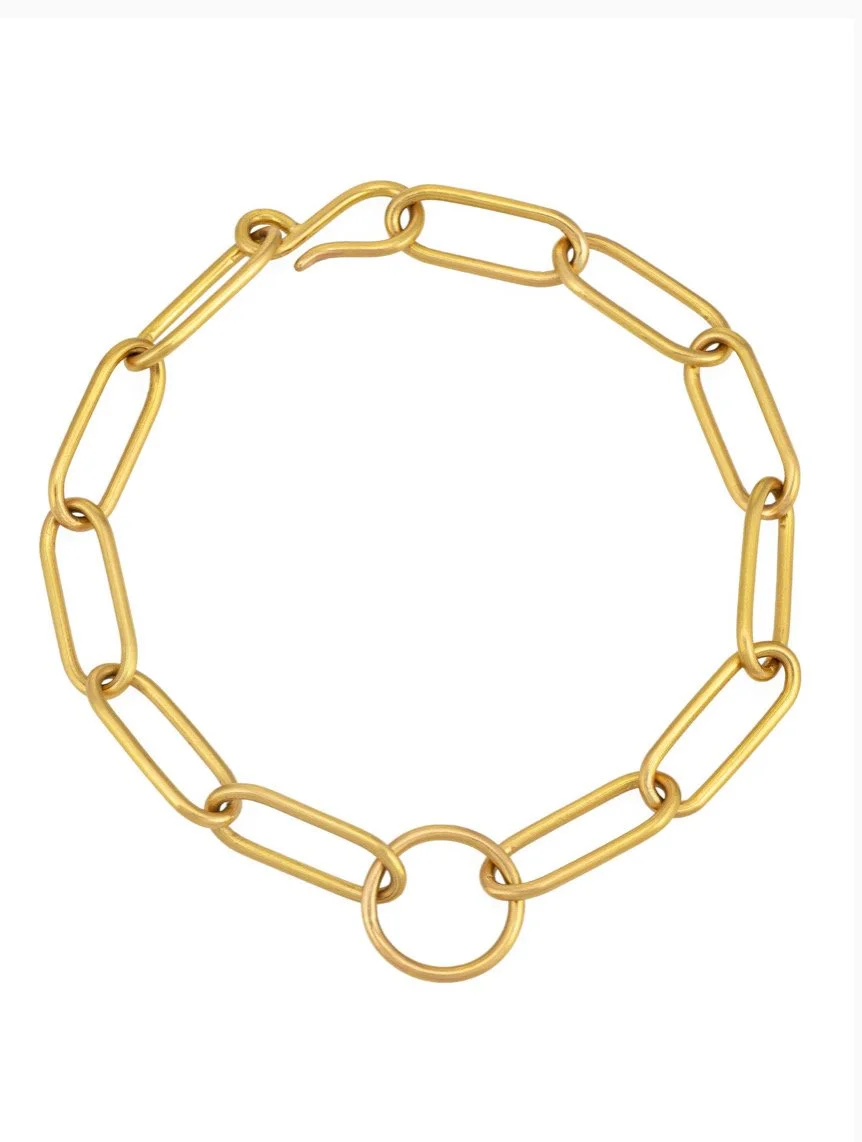 Below: 18k Vesica Pisces Signet Ring, 20k Paperclip Bracelet