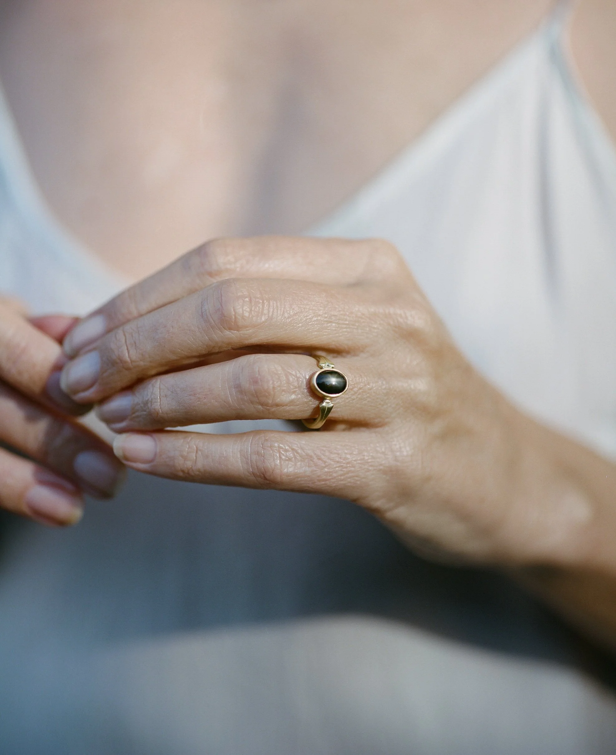 Above: 20k Silver Diamond Portal Ring, 18k Black Star Sapphire Ring